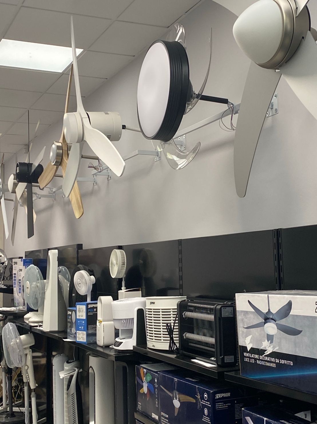 CARATTERISTICHE: Barre in Metallo Verniciato con Ganci a Forte Tenuta per Esposizione Ventilatori