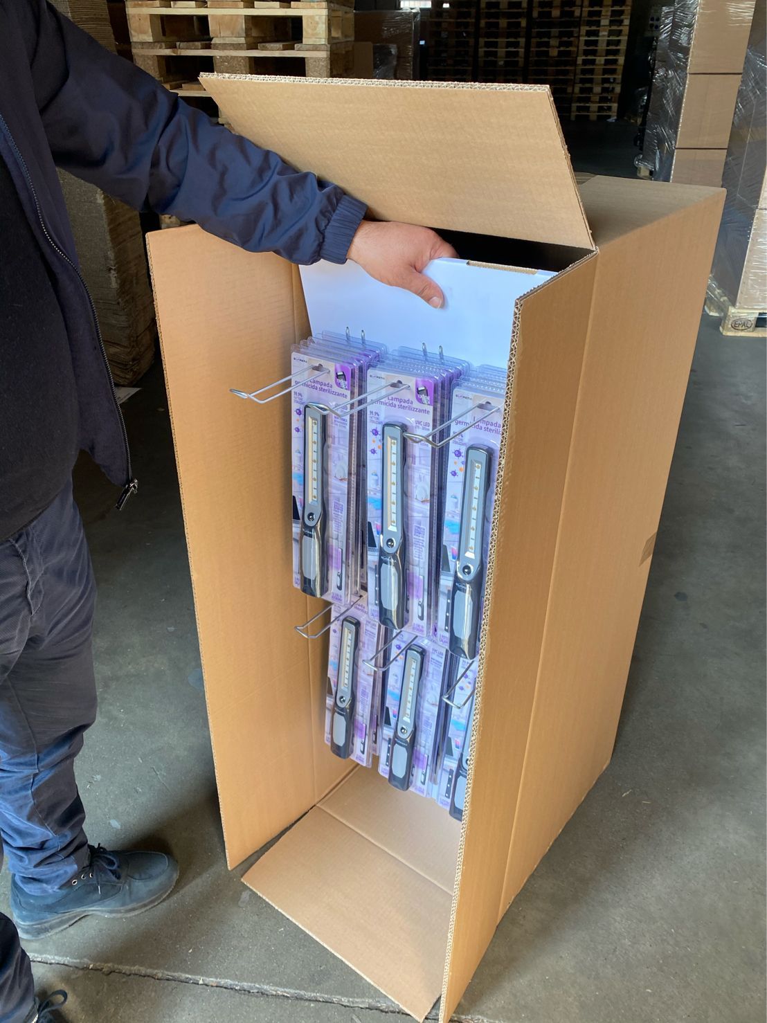 Espositore da Terra con Ganci in Metallo Zincati imballato e pre-caricato, PRONTO DA ESPORRE.