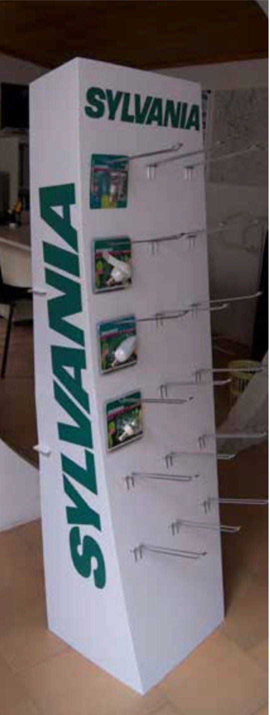 Espositore in cartone riciclato economico stampato in digitale per esposizioni promozionali con prodotti in appenderla.